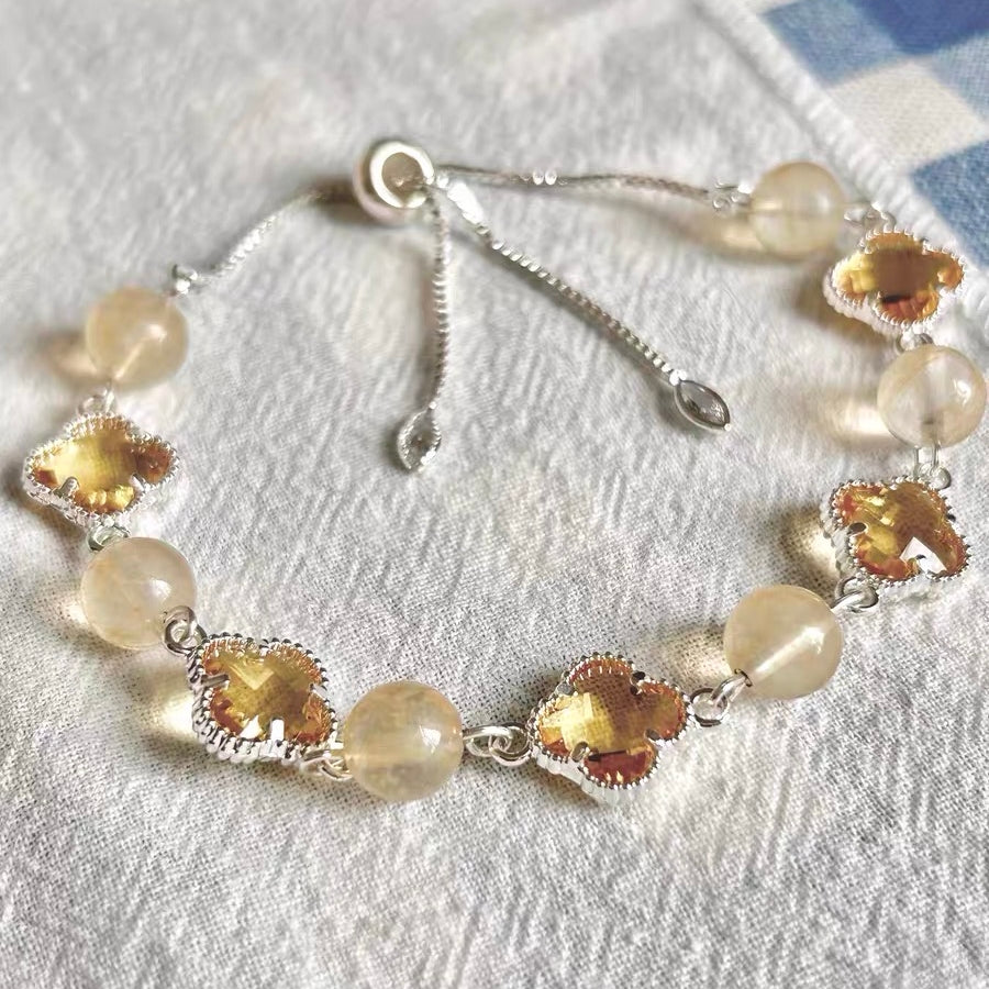 「開運・金運」幸運のクローバーとイエローフローライトの金運ブレスレット - 知恵と幸運で富を掴む  -